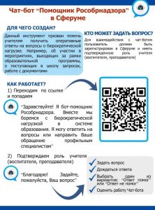 На платформе «Сферум» функционирует чат-бот «Помощник Рособрандзора», созданный с целью получения оперативных ответов на вопросы педагогов, связанные с бюрократической нагрузкой.